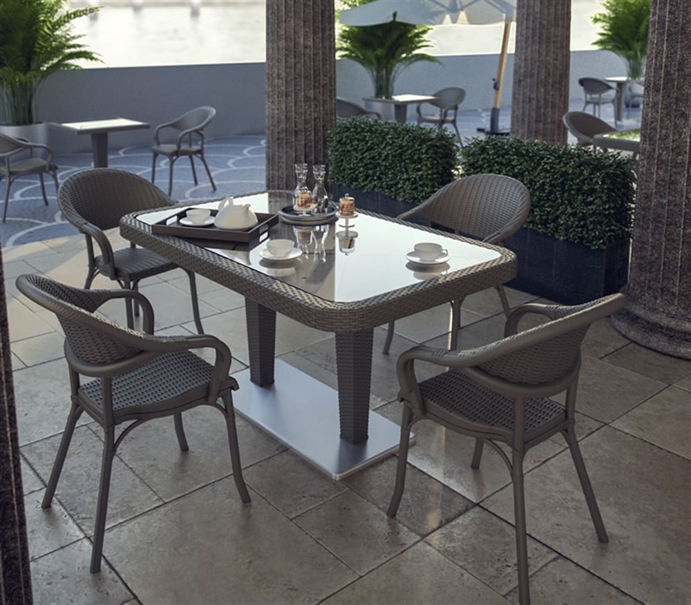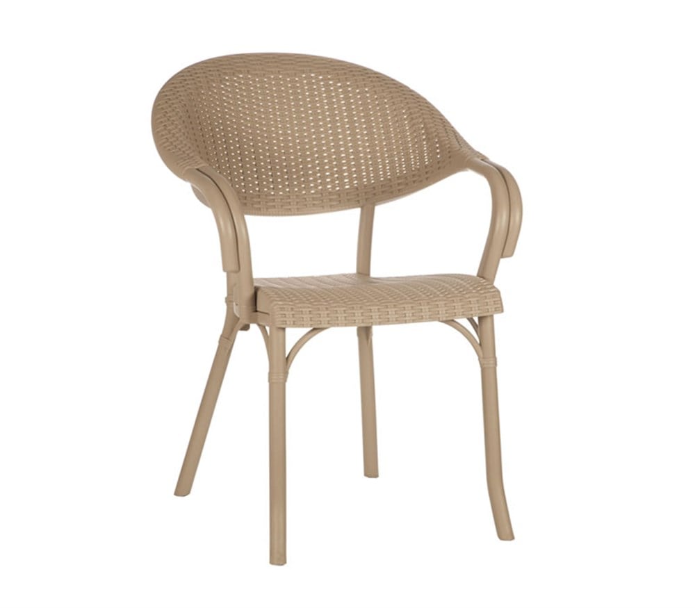 Flash bahçe sandalyesi sırt ve oturma bölümlerinde uygulanan rattan görünümü ile son derece şık bir tasarıma sahiptir.