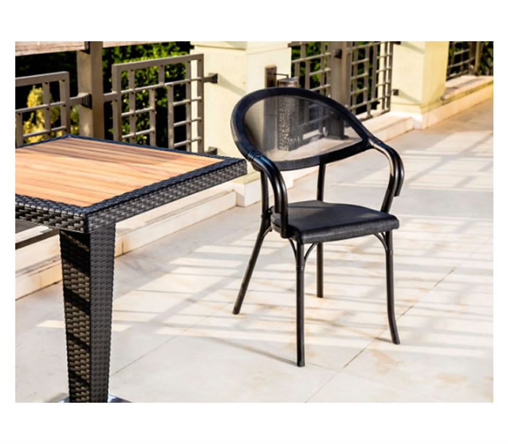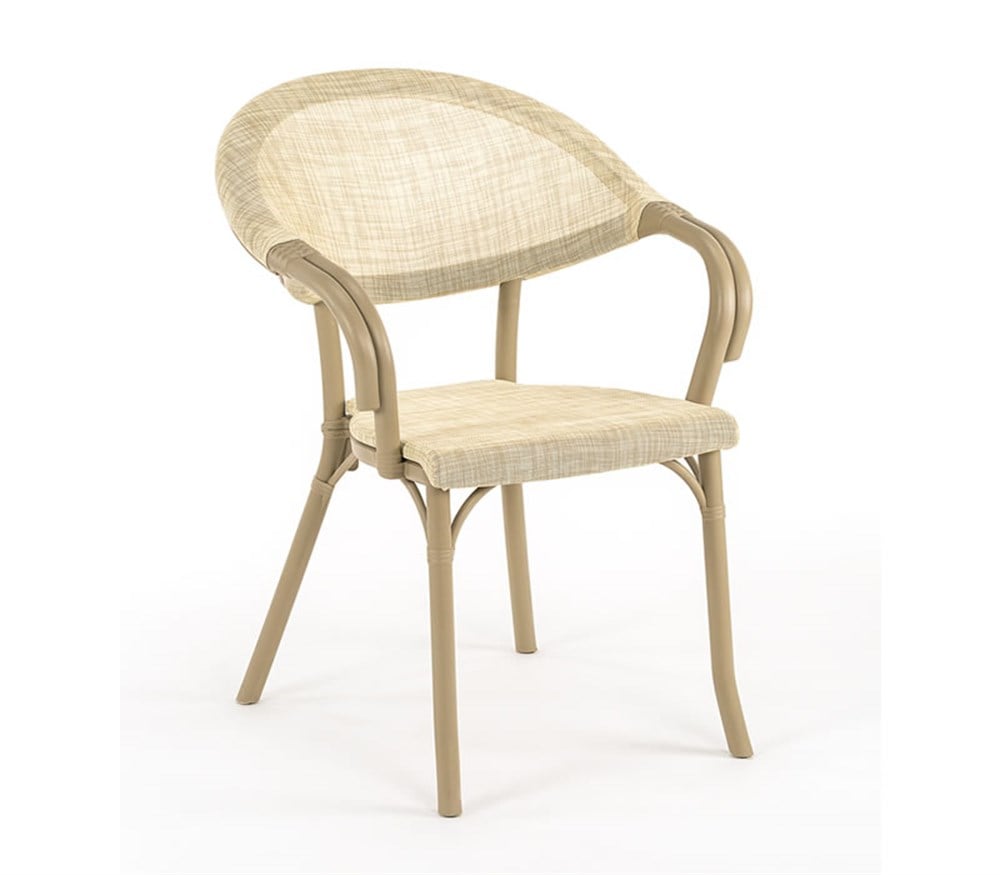 Flash bahçe sandalyesi sırt ve oturma bölümlerinde uygulanan textilen ile son derece şık bir tasarıma sahiptir.