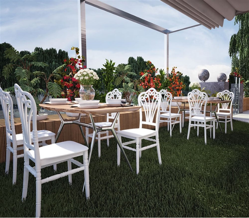 Flora düğün sandalyesi ile salon dekorasyonunuz için hem dayanıklı hem de şık bir çözüme sahip olabilirsiniz. Farklı renk seçeneklerini de beraberinde sunan Roma serisi kombinasyon seçeneklerinizi çoğaltmaktadır