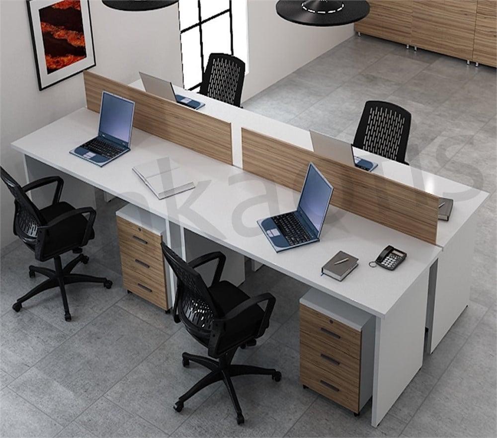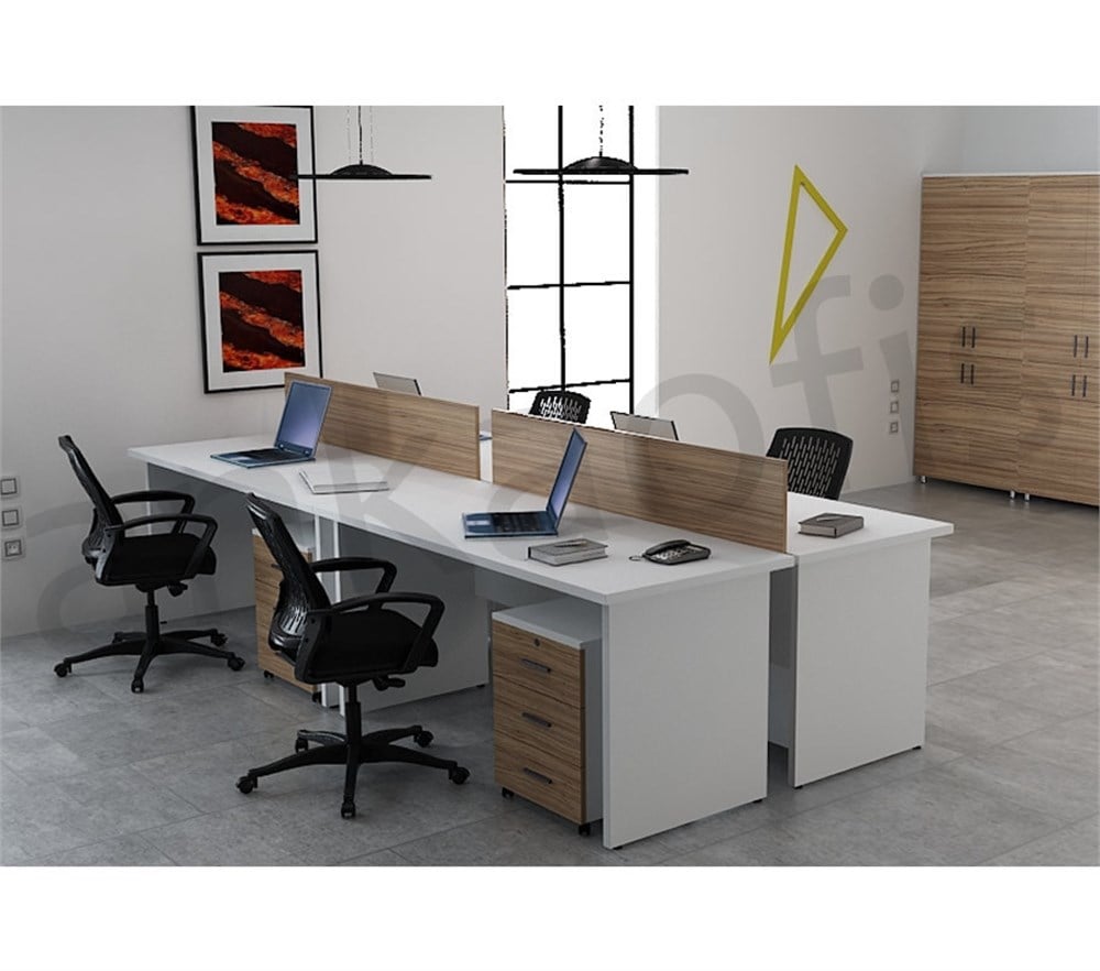 İzle 4'lü çalışma masası ekip çalışmaları ve kalabalık personel grupları için üretken çalışma alanları oluşturur. Çoklu çalışma masaları ile kolektif çalışma alanları oluşturabilirsiniz. İzle serisi farklı ürün grupları ile bir çok alan için çözüm üreten modellere sahiptir. Ekip çalışması için bir arada iş görme imkanı sağlayan ürün aynı zamanda bölücü paneller yardımı ile kullanıcılar için kişisel çalışma masaları da oluşturur.