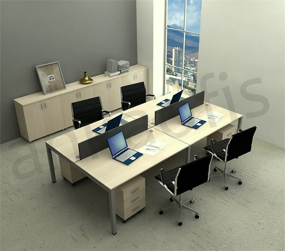 Karem creates a study area where four people can work comfortably. The divider panels placed between four separate work tables also make the working area of the users special. You can design your work offices as you wish with the models of staff tables produced in the desired color and size.