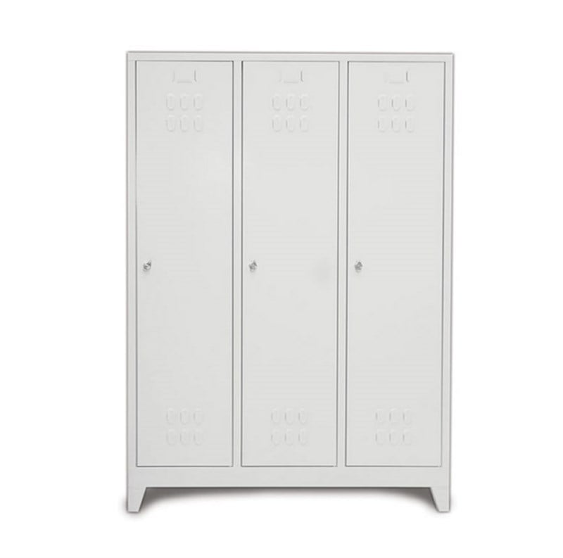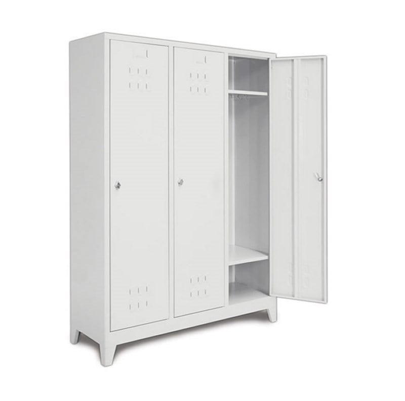 Üçlü boy kapaklı soyunma dolabı, kullanıcısına özel bir alan sağlar. Kalabalık çalışma ortamlarında, kilitli tasarımı ile güvenli bir alan oluşturur. İç bölümünde askılık ve raf kısımları mevcuttur ve kullanışlı bir form düşünülmüştür. Çelik saç malzemeden üretilen ürün tercihen iki kapaklı olarak da tasarlanmıştır. Ergonomik yapıya sahip olan tekli soyunma dolabı, kullanıcısına rahat, işlevsel ve güvenli bir alan sağlar.