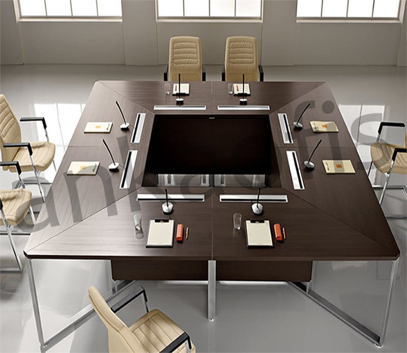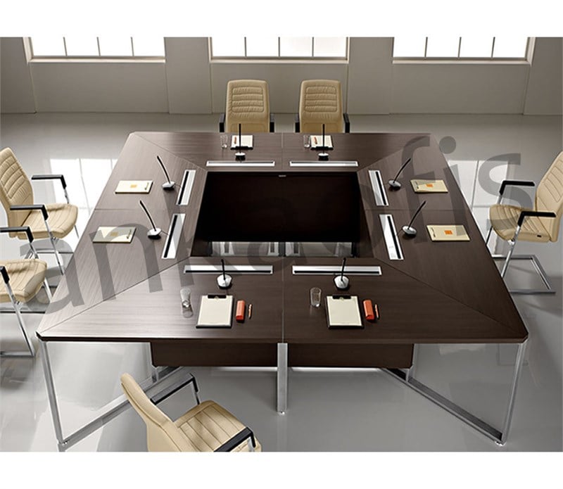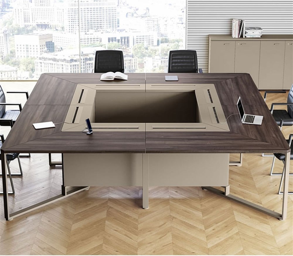 Gloss kare toplantı masası kalabalık katılımcılar için etkin bir yapıya sahiptir. Modern tasarımı ile çalışma alanlarına bugünün tasarım çizgilerini taşıyan toplantı masası serisi estetik bir görünüm sağlar. Özel tasarlanmış masa ayakları tasarımın tümüne hakim olmaktadır. Büro mobilyaları alanında geliştirilen yeni malzemelerle üretilen ürün işlevsel detaylarıyla üretken bir çalışma alanı sağlar. Tüm katılımcılar için masa üstünde kullanılan kablo kanalları görüşme boyunca kablo karışıklığından uzak bir ortam sunar. Bu eklentiyle hem kablo geçişleri düzenlenebilir ve erişim kolay bir alan sağlar.